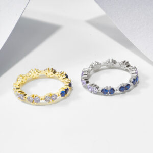 s925 sterling silver gradient colour blue and white zirconia ring female